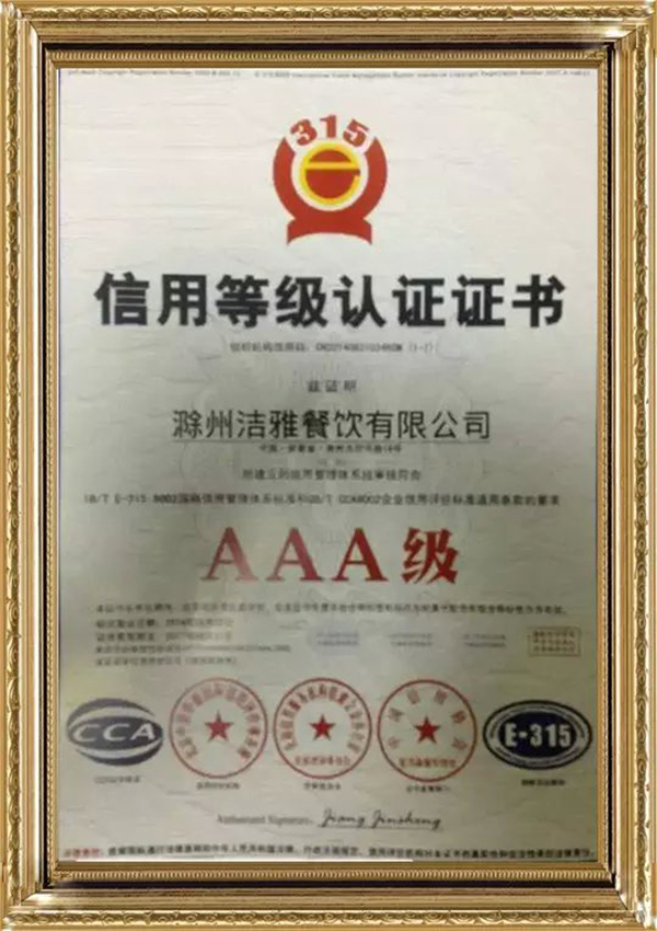 信用等級認證證書