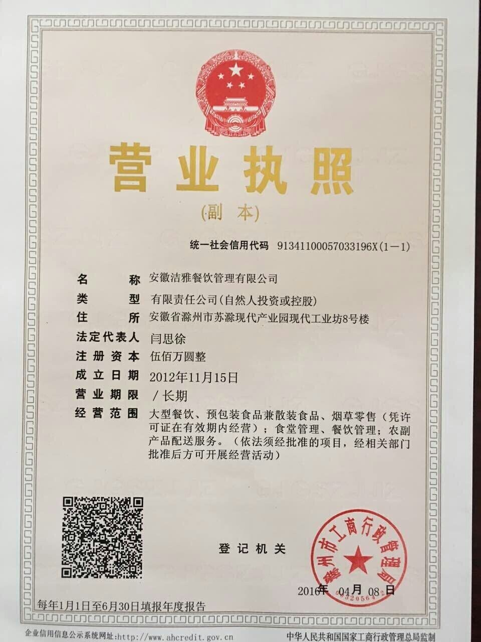 安徽潔雅餐飲管理有限公司